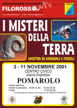 organizzato una mostra di MINERALI E FOSSILI dal titolo "I MISTERI DELLA TERRA" I collezionisti che hanno prestato i materiali per la mostra sono: MINERALI: Adami Marco di Pomarolo, Celva Giuliano di Martignano, Ducati Luciano di Cognola, Maiello Fulvio di Ravina, Marisa Edo di Rovereto, Pallaoro Mario e Lino di Sant'Orsola. FOSSILI: Benvenuti Claudio di Pomarolo, Bazzanella Emma e Luigi di Trento